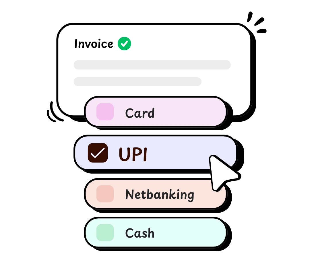 Customize templates, share bills on WhatsApp, collect payments!
