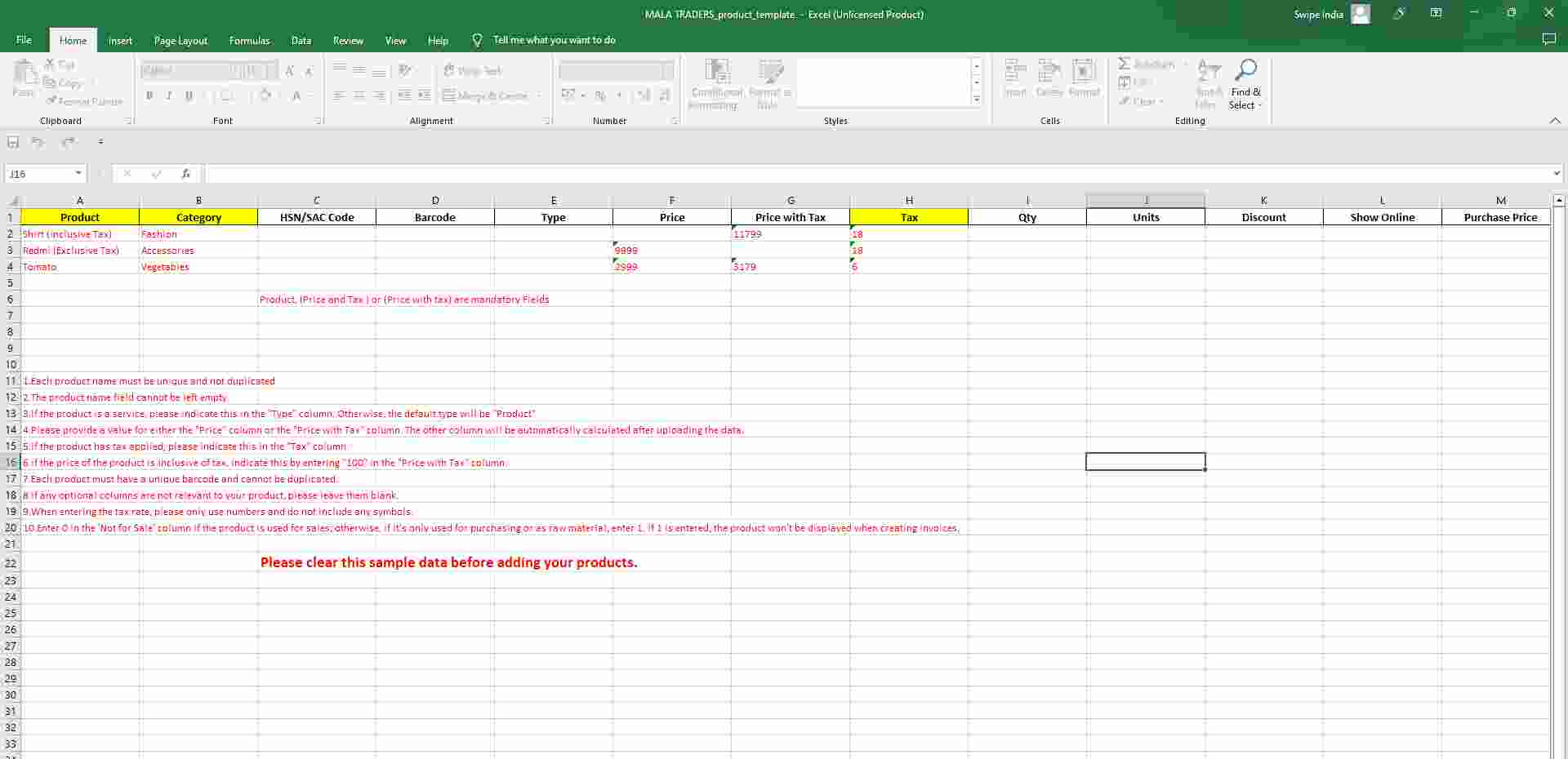 Once downloaded, open the Excel sheet, fill in the details of the product as per the template, and save the Excel sheet.