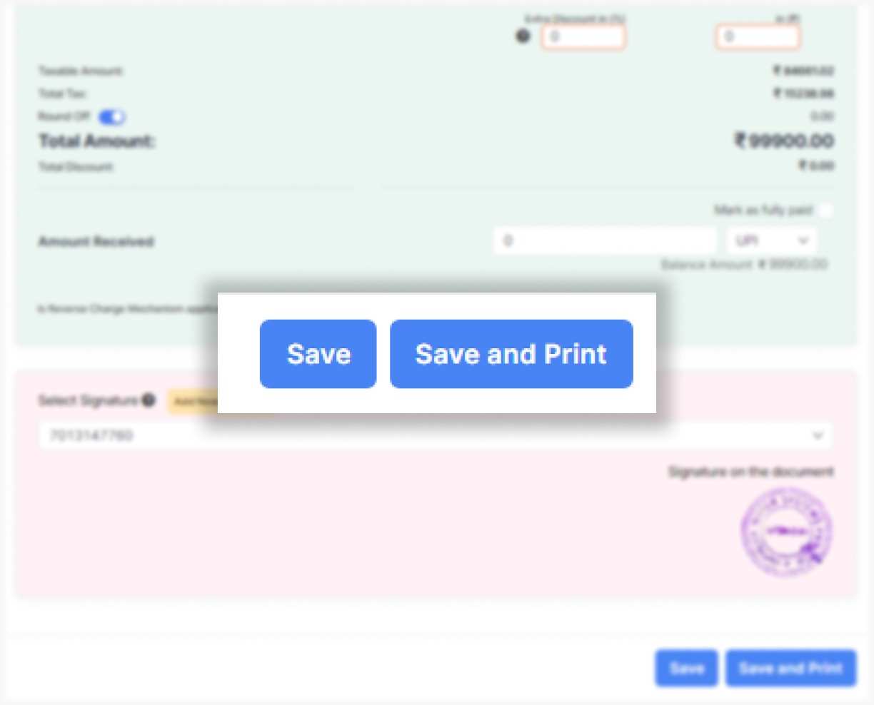 Fill in other details like quantity, unit price, price with tax and discount in both percentage and rupees.