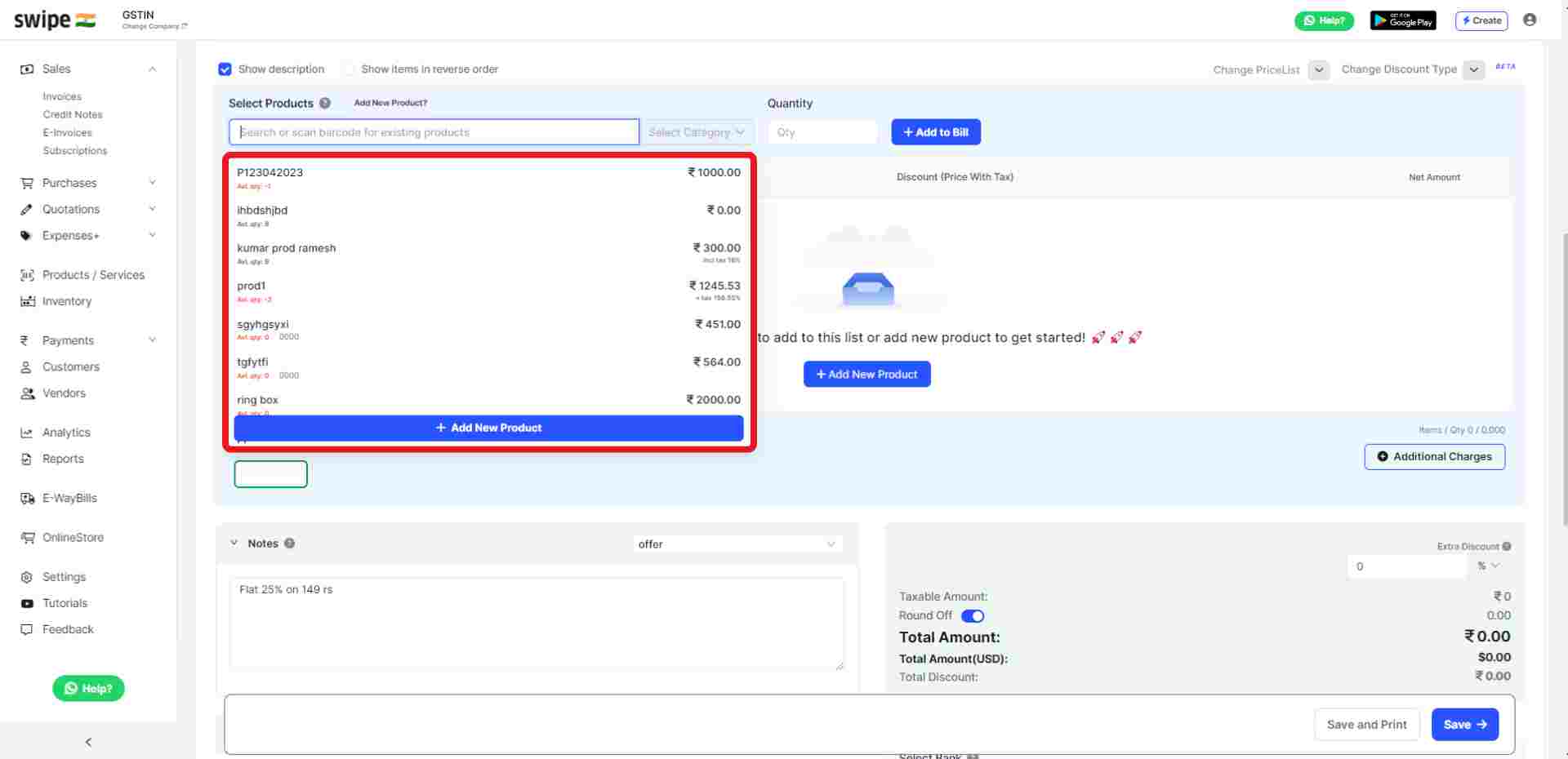 Add your new products on Swipe by clicking on "Add New Product" and filling up the customer details. or