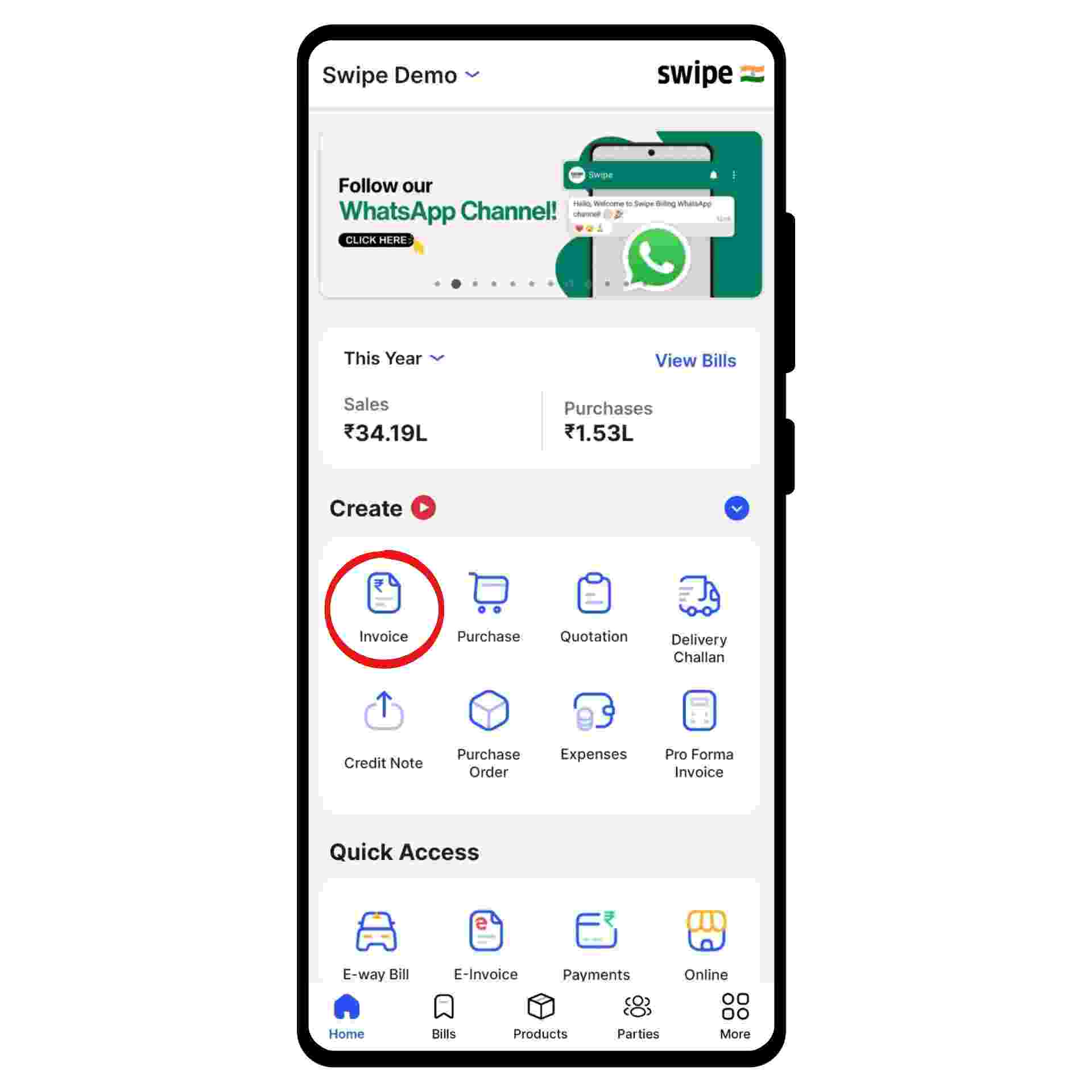 Congratulations! Your export invoice is ready, and you can share it via WhatsApp, SMS, or email with your customer by clicking on “Send Bill” at the bottom of the page.