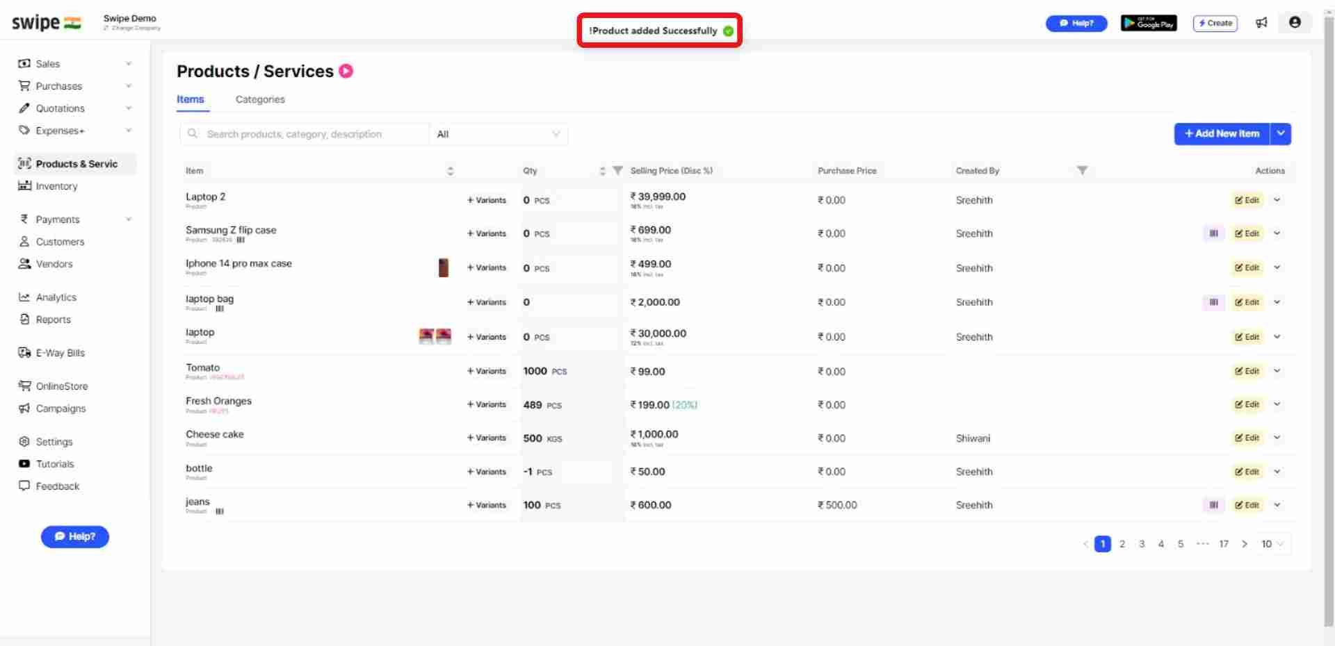 (You can also add units of measurement, HSN / SAC Code, purchase prices, category, etc.)