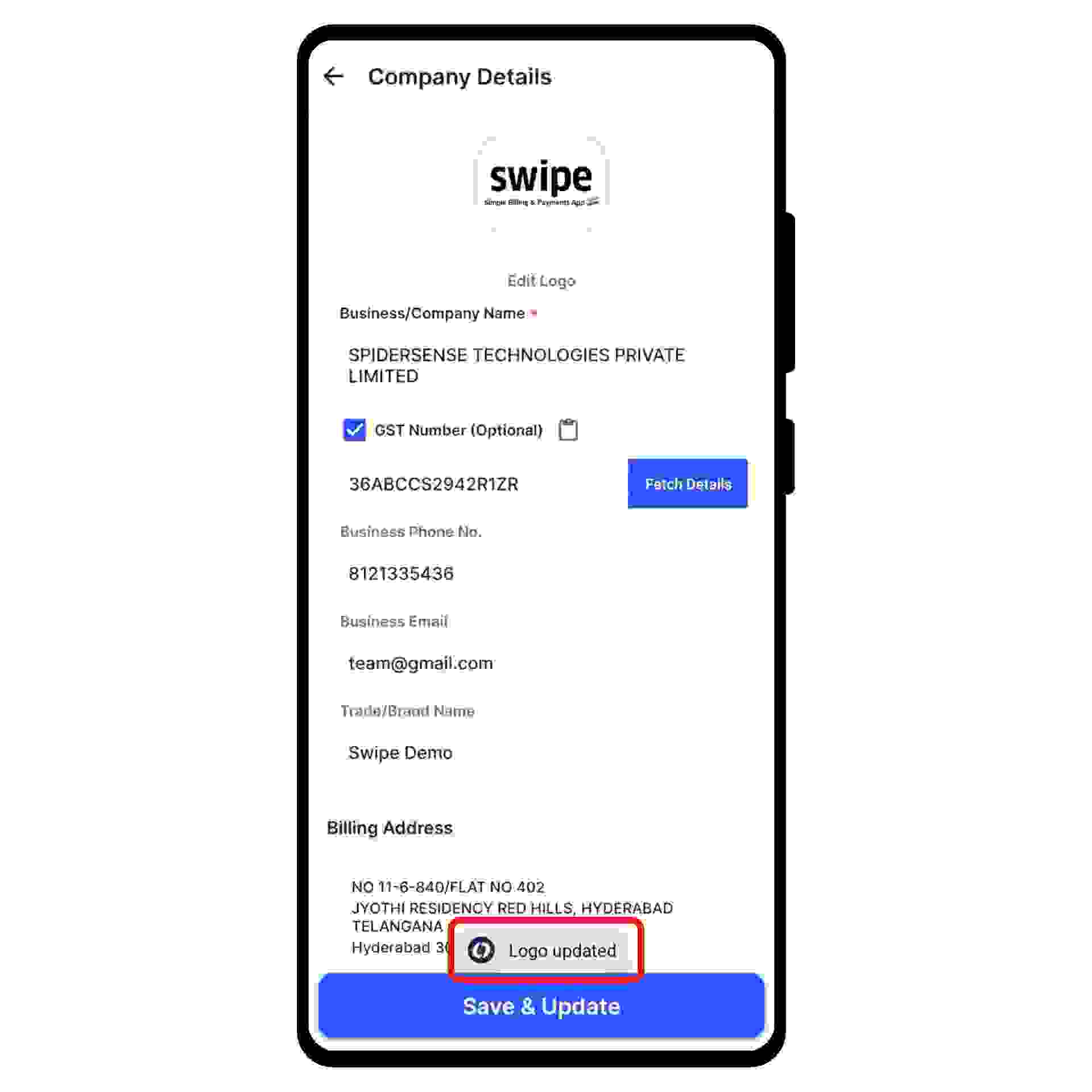 Congratulations! You have successfully added your company logo. A pop-up will appear on top of the screen informing the same.