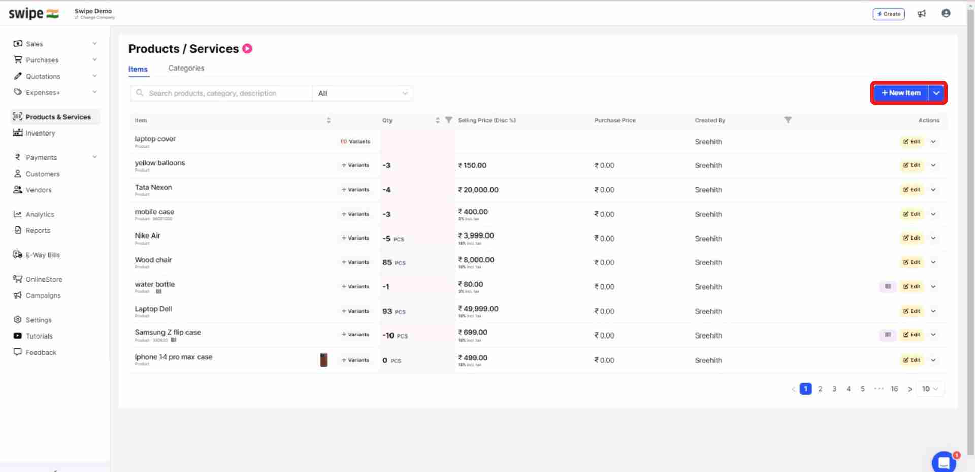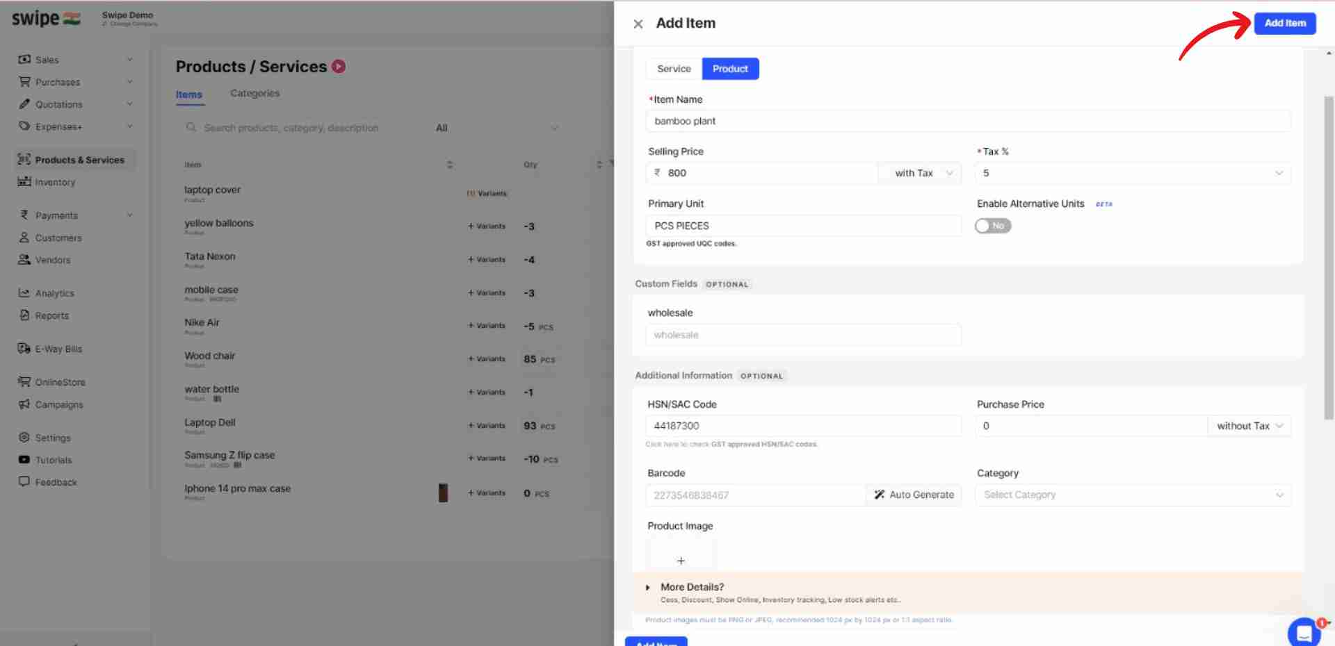 (You can also add units of measurement, HSN / SAC Code, purchase prices, category, etc.)