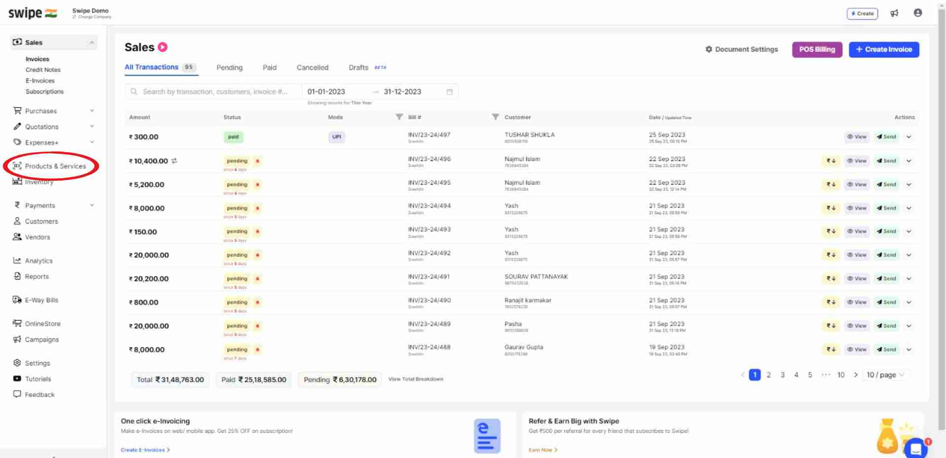 Select the Products / Services option from the dashboard on the left.