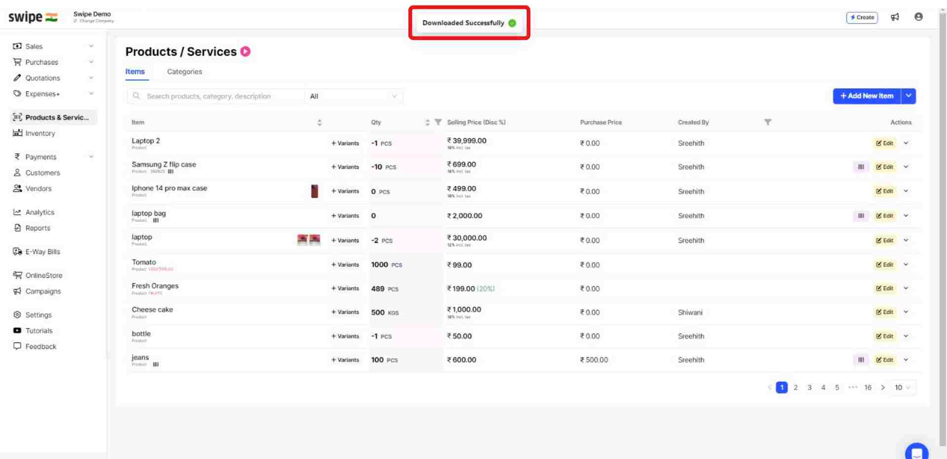 Now on Swipe, click on the drop down button beside “+Add New Items” and select the “Upload Items” option from the dropdown list.
