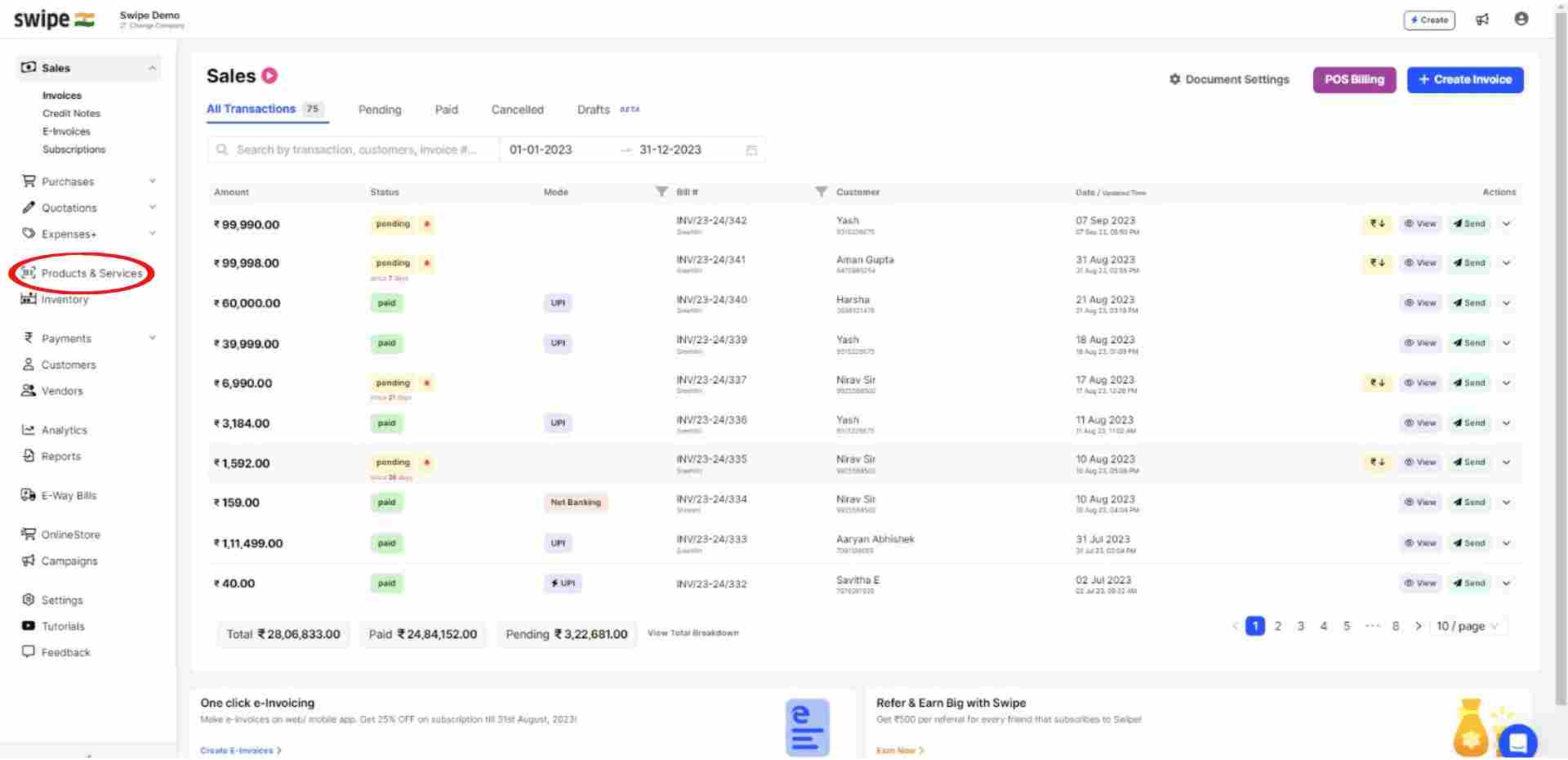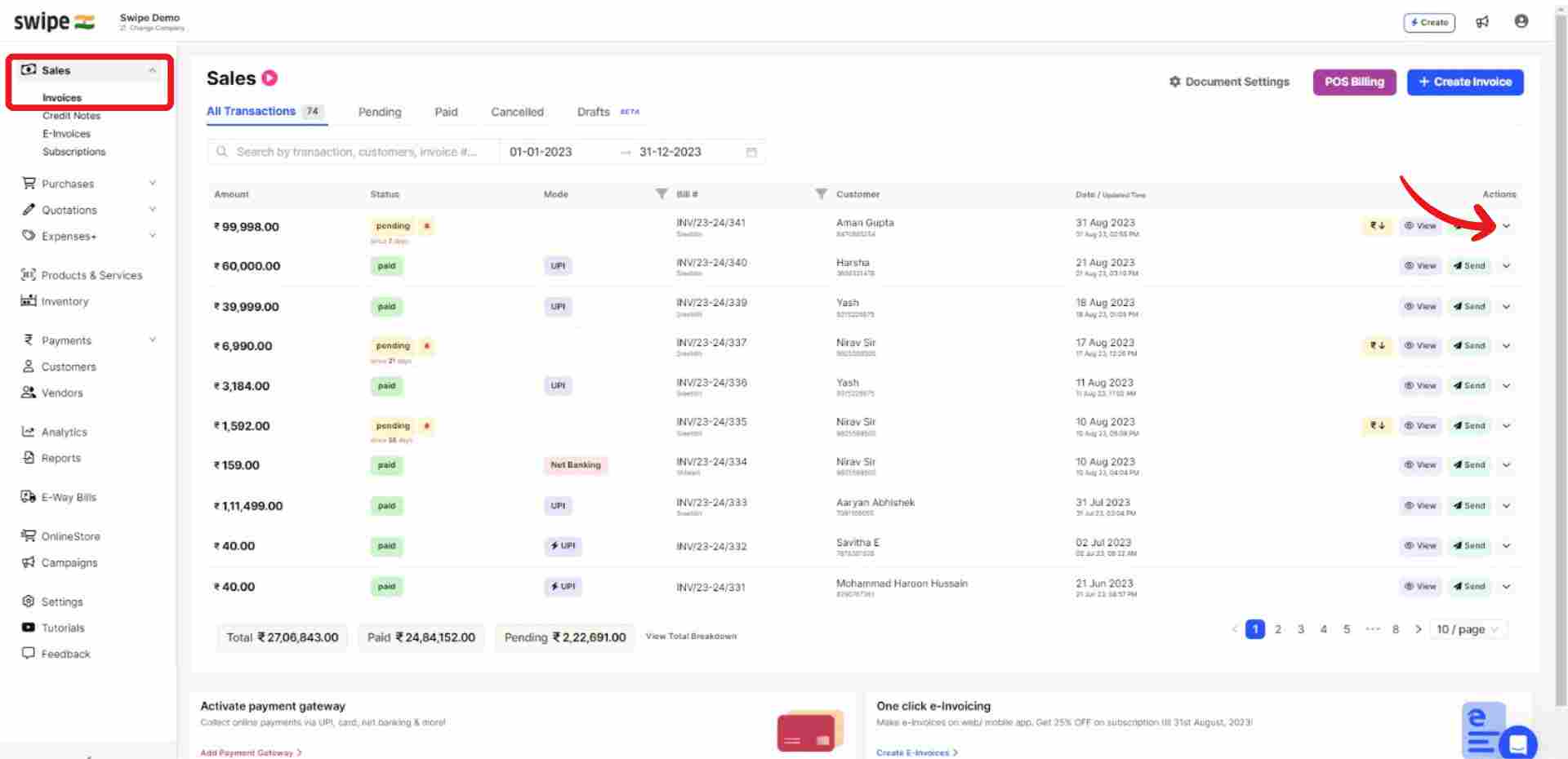 Congratulations! You have successfully edited the details of an old invoice and you can share it via SMS, Email, and WhatsApp.