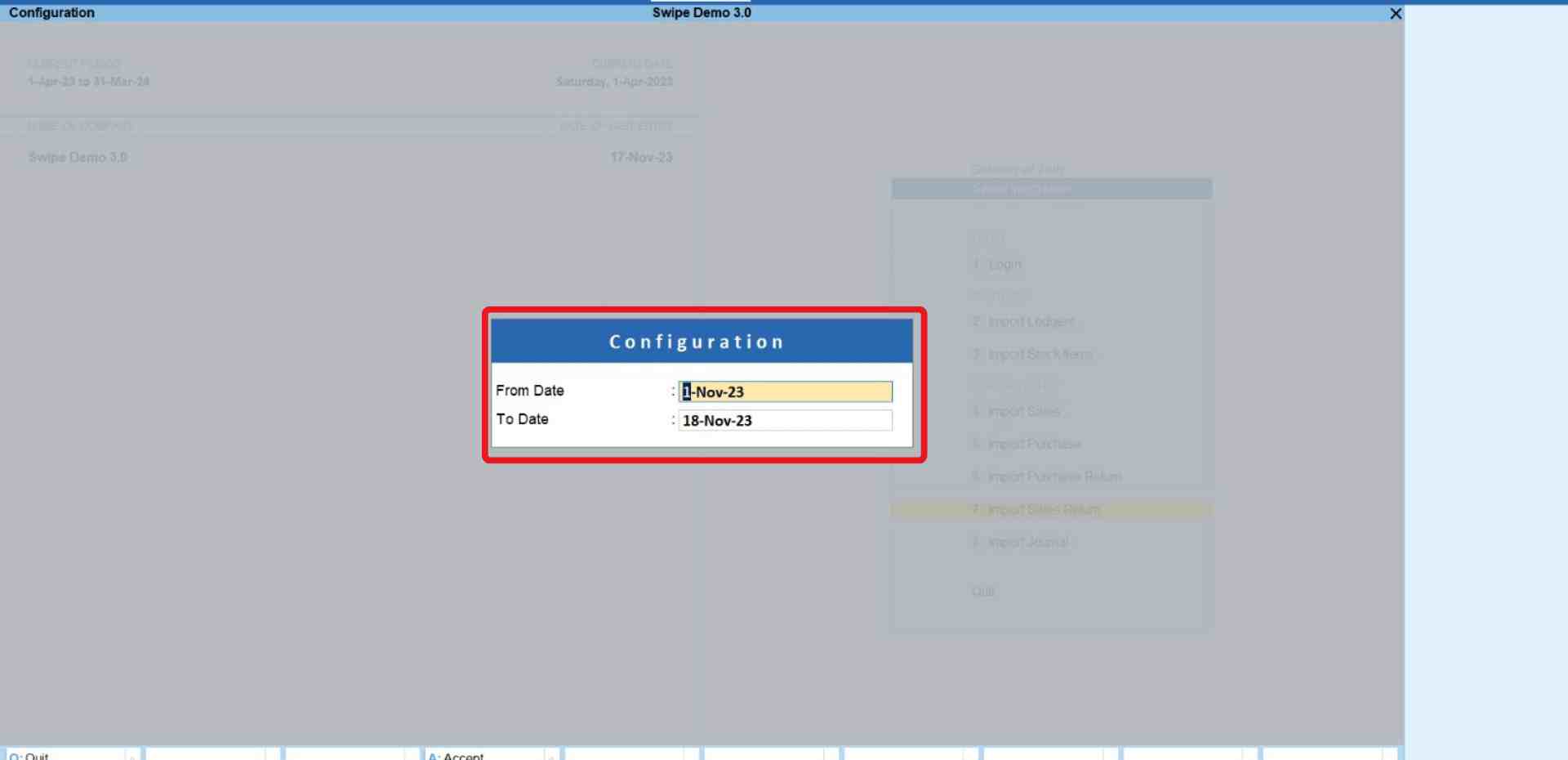 Click on the “Import Sales Return” option under the Masters section.