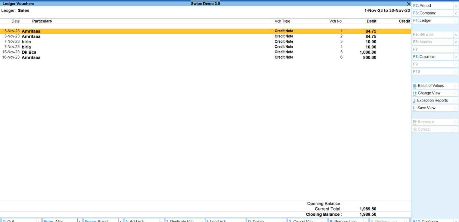 Congratulations! You have successfully imported new ledgers and a pop-up appears at the bottom of the screen informing the screen. Press any key to continue.