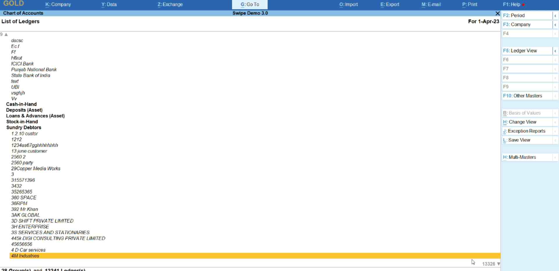 Click on the “Import ledgers” option present at the top right corner of the screen or press the F2 key on your keyboard.