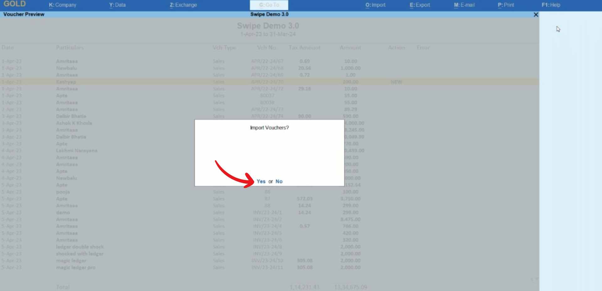 Congratulations, You have successfully imported customer’s and vendor’s data from your Swipe account to your Tally account and a pop-up appears at the bottom of the screen informing the same.