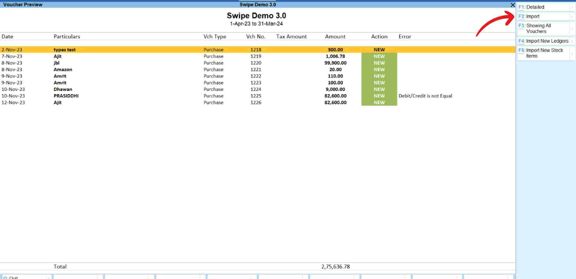 Click on the “Import” option present at the top right corner of the screen or press the F2 key on your keyboard.