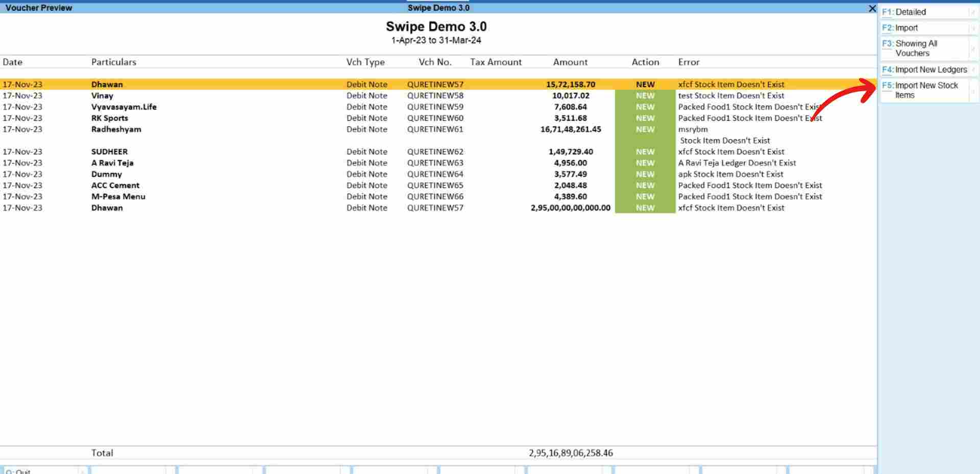 For the error “Stock Items Doesn't Exist": Click on the “Import New Stock Items” option present at the top right corner of the screen or press the F5 key on your keyboard.