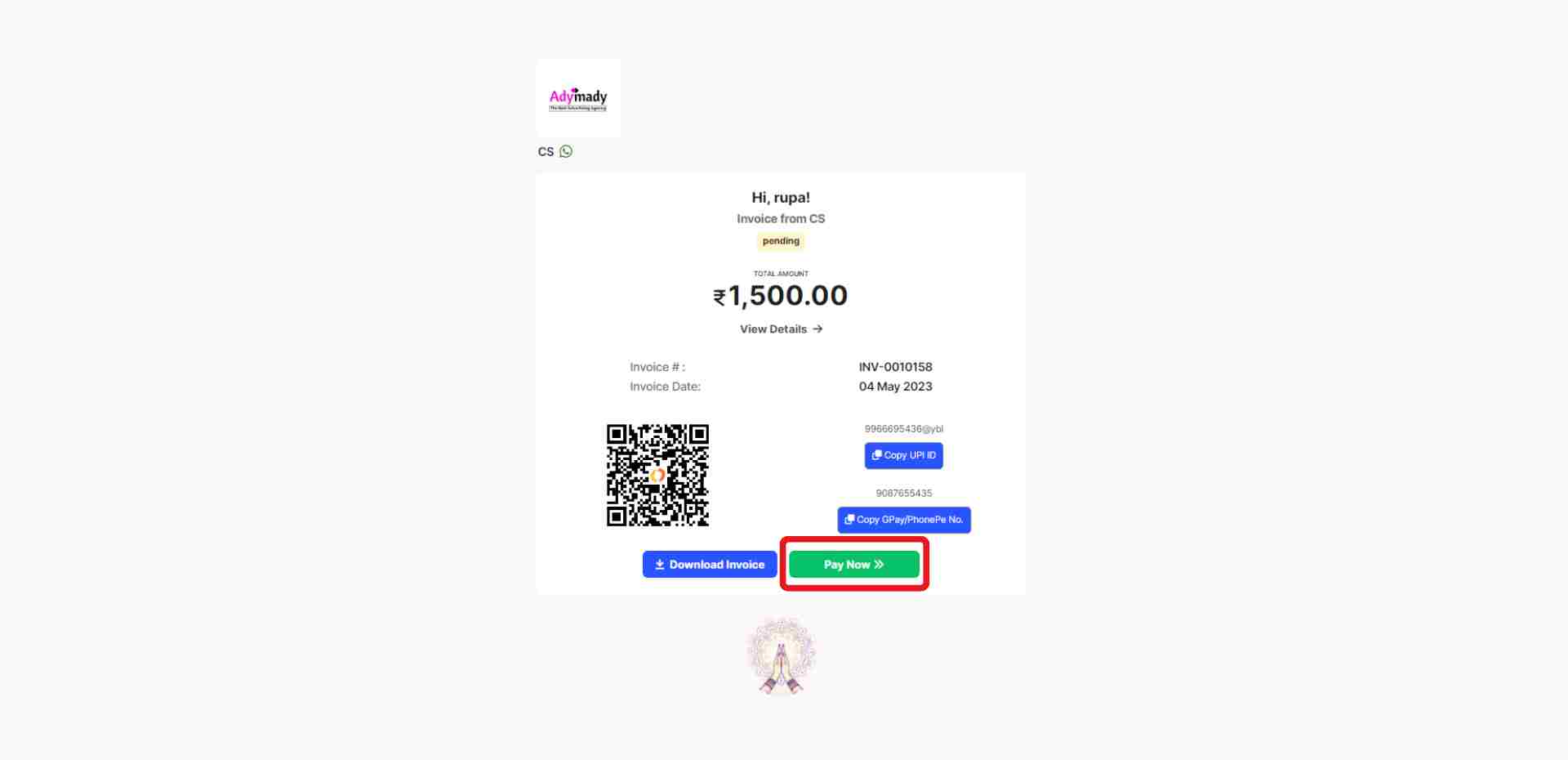 Step 4: Customer can pay by clicking on the “Pay Now” option.